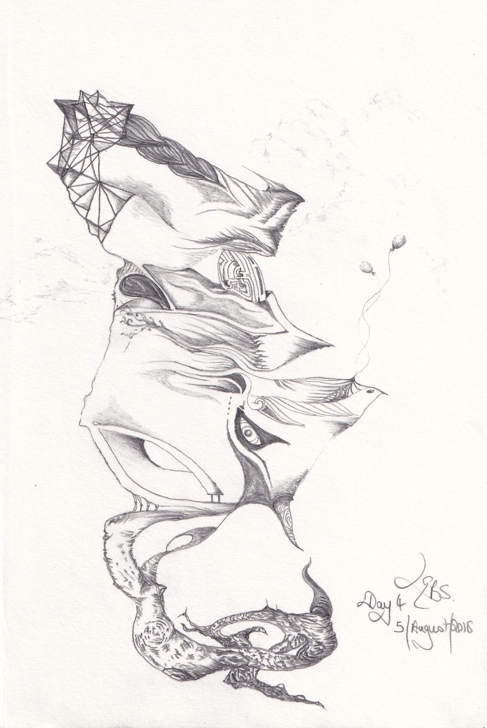 The Truth Beauty drawing series began when I found it very difficult to get through creative blocks. The drawings are created in one sitting, sometimes taking 15 minutes to complete, sometimes hours. They are informed by compound imagination, a connection between nurturing environmental factors and challenging the ordinary to present worlds and creatures that are in their own right imperfect and beautiful.